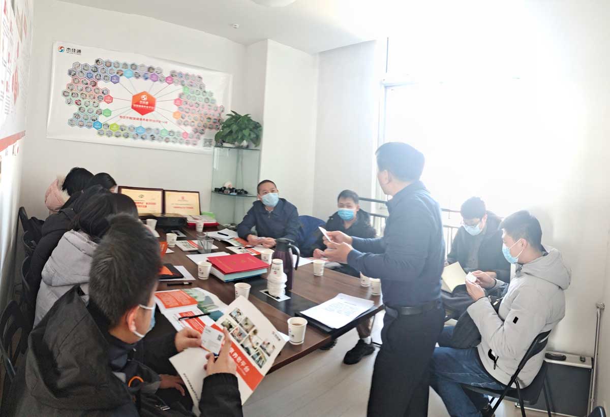 領(lǐng)導(dǎo)一行和公司創(chuàng)始人張總進行了深入的交流,了解了杰佳通在智慧養(yǎng)老行業(yè)16年的發(fā)展歷程,并在會議室聽取了張總在智慧養(yǎng)老平臺研發(fā)、智慧養(yǎng)老終端產(chǎn)品使用以及智慧養(yǎng)老行業(yè)發(fā)展趨勢等等方面的匯報。